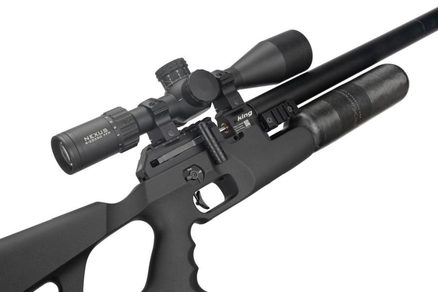 King on valmiiksi varusteltu slugien ampumiseen, mutta toimii erinomaisesti myös perinteisillä ilmakivääriluodeilla. Picatinny-tyyppinen kiikarikisko on kallistettu 30 MOA helpottamaan tähtäimen säätämistä pitkille matkoille. Molemmissa kyljissä on lyhyet Picatinny-kiskot lisävarusteiden kiinnittämiseen.