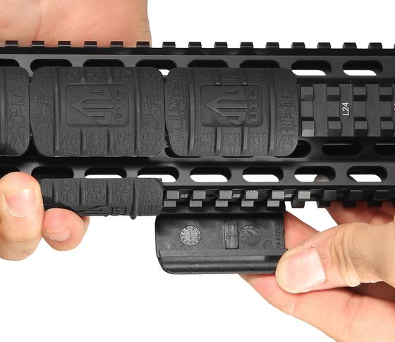 Näillä muovisilla Picatinny-kiskon suojilla parannat otetta ja säästät sormia. Suojat lukittuvat kiskoon eivätkä liu'u omia aikojaan. Useampi suoja asettuu nätisti peräkkäin.